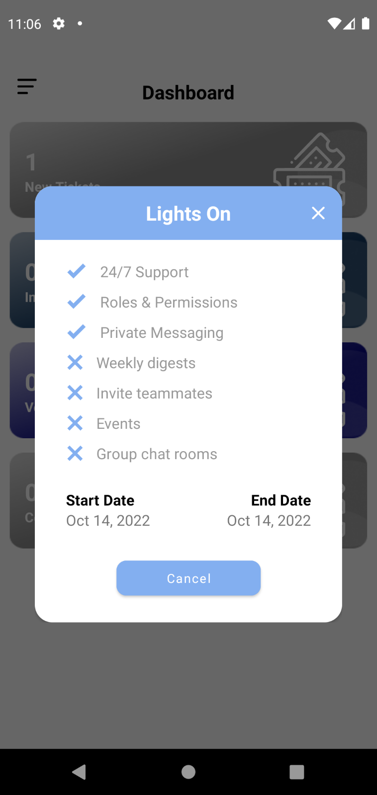 When the user clicks on membership, a popup will appear in which the user can see the plan they are currently on.