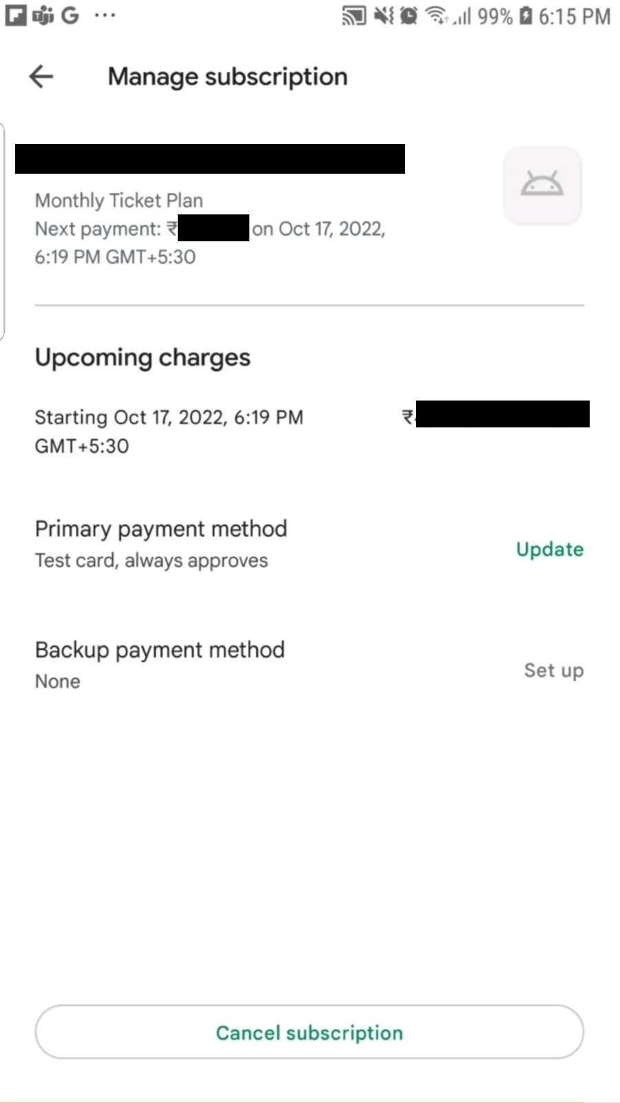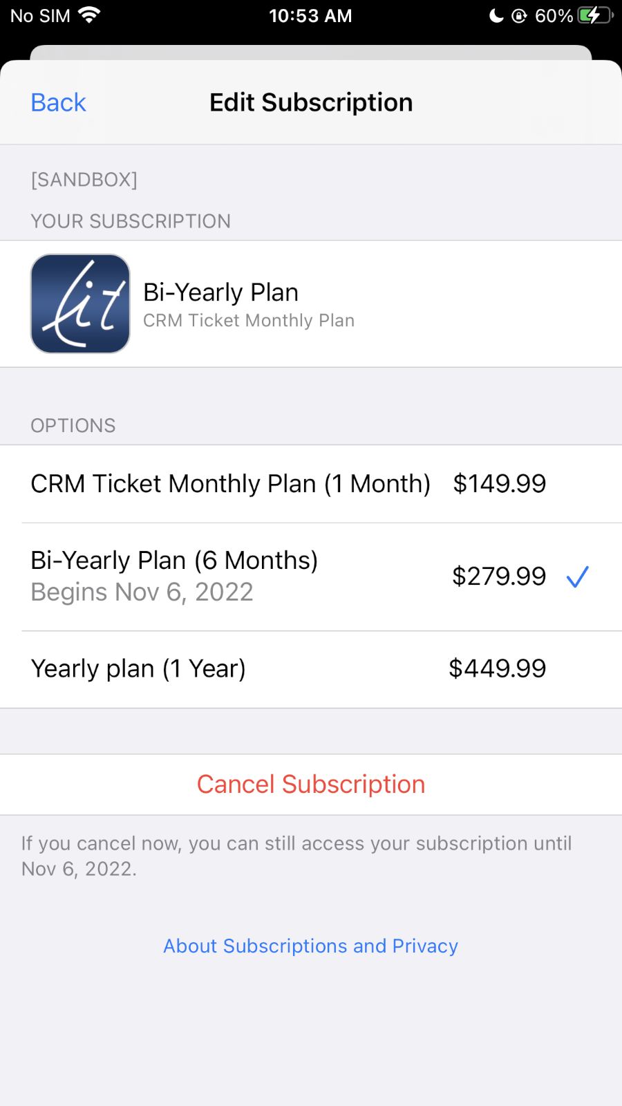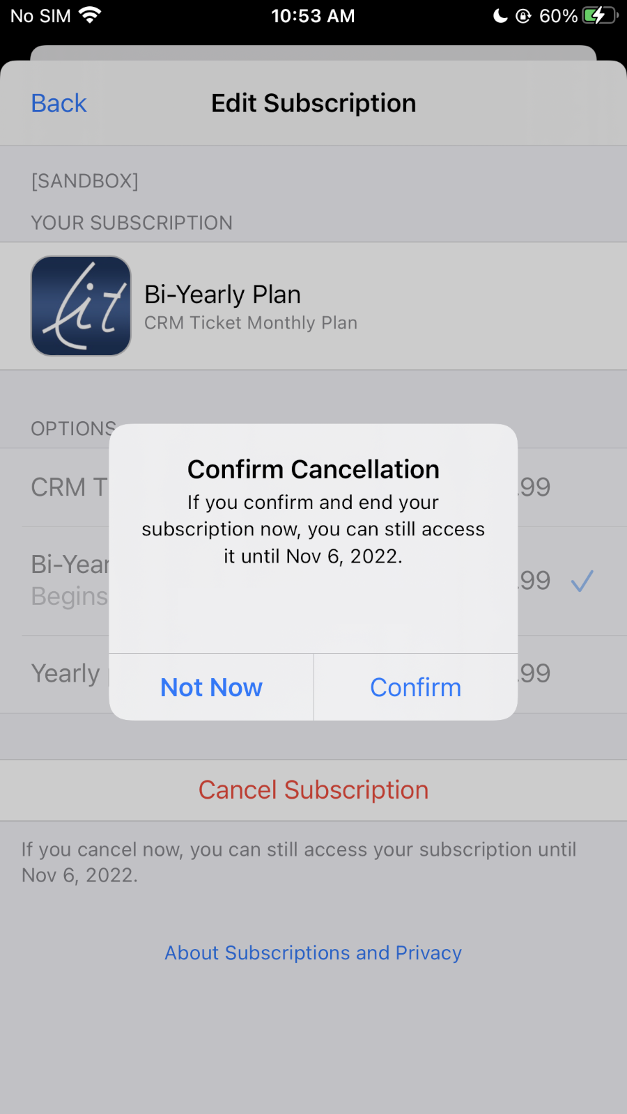Click Cancel Subscription button