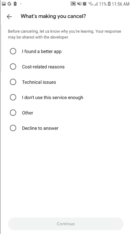 Click Cancel button, you are redirected to a screen in play store app