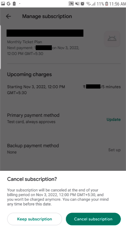 Click on Cancel subscription, Confirmation Popup Will Appear with some information. Where you can see what will happen on cancel subscription.