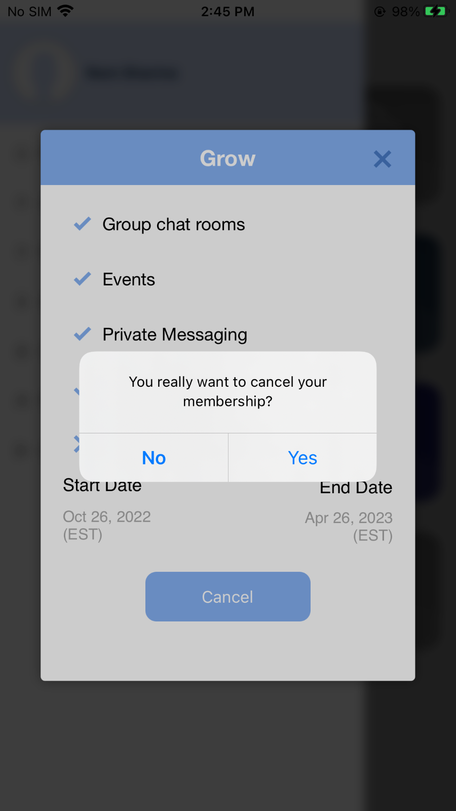 Cancel Membership Steps
