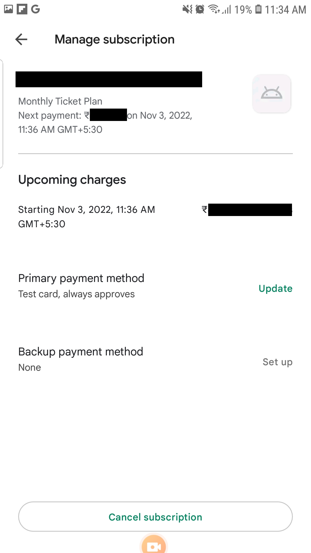 Click on active subscription