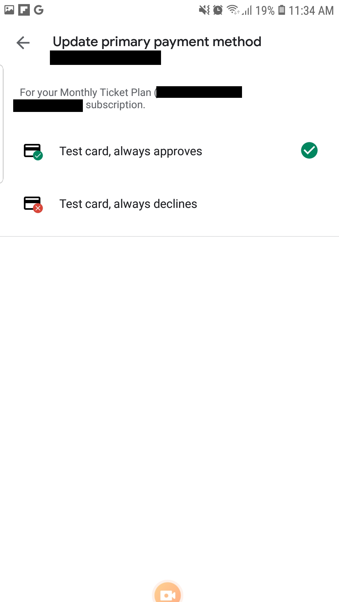 Select new payment method