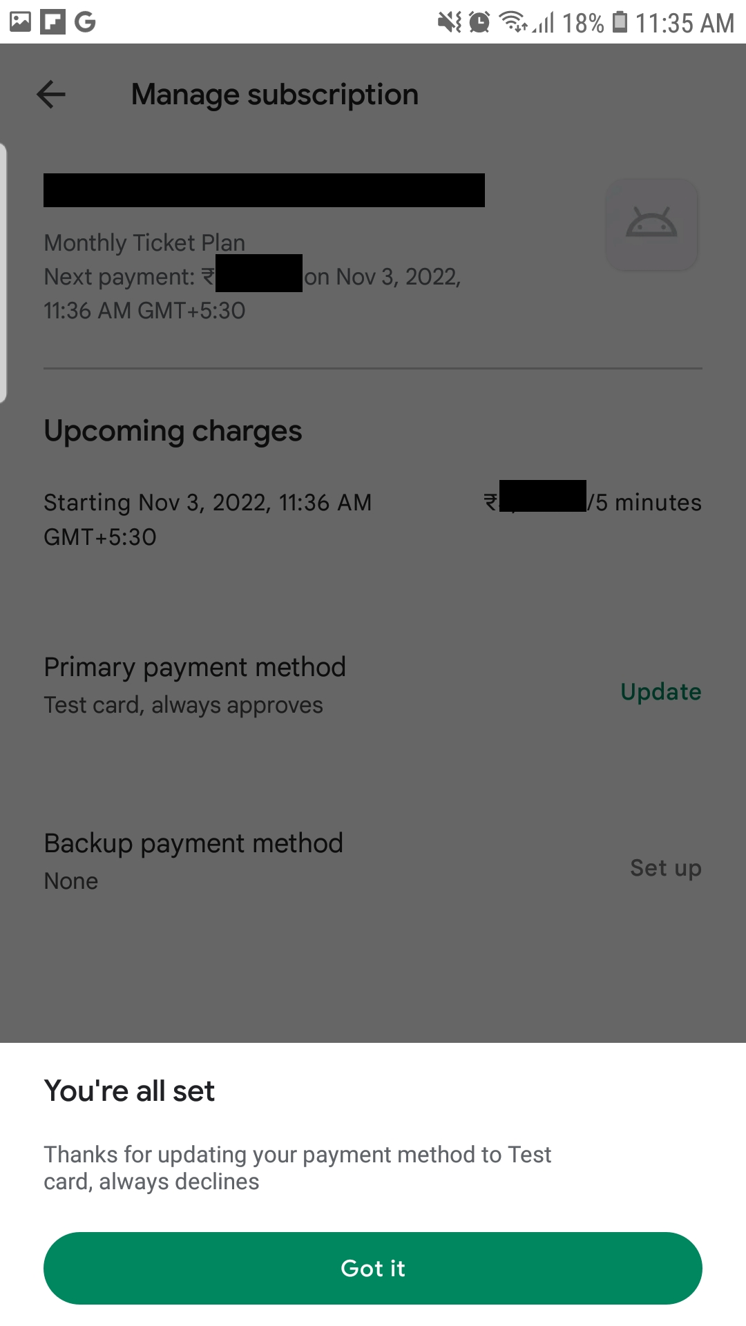 Click update alongside Primary payment method