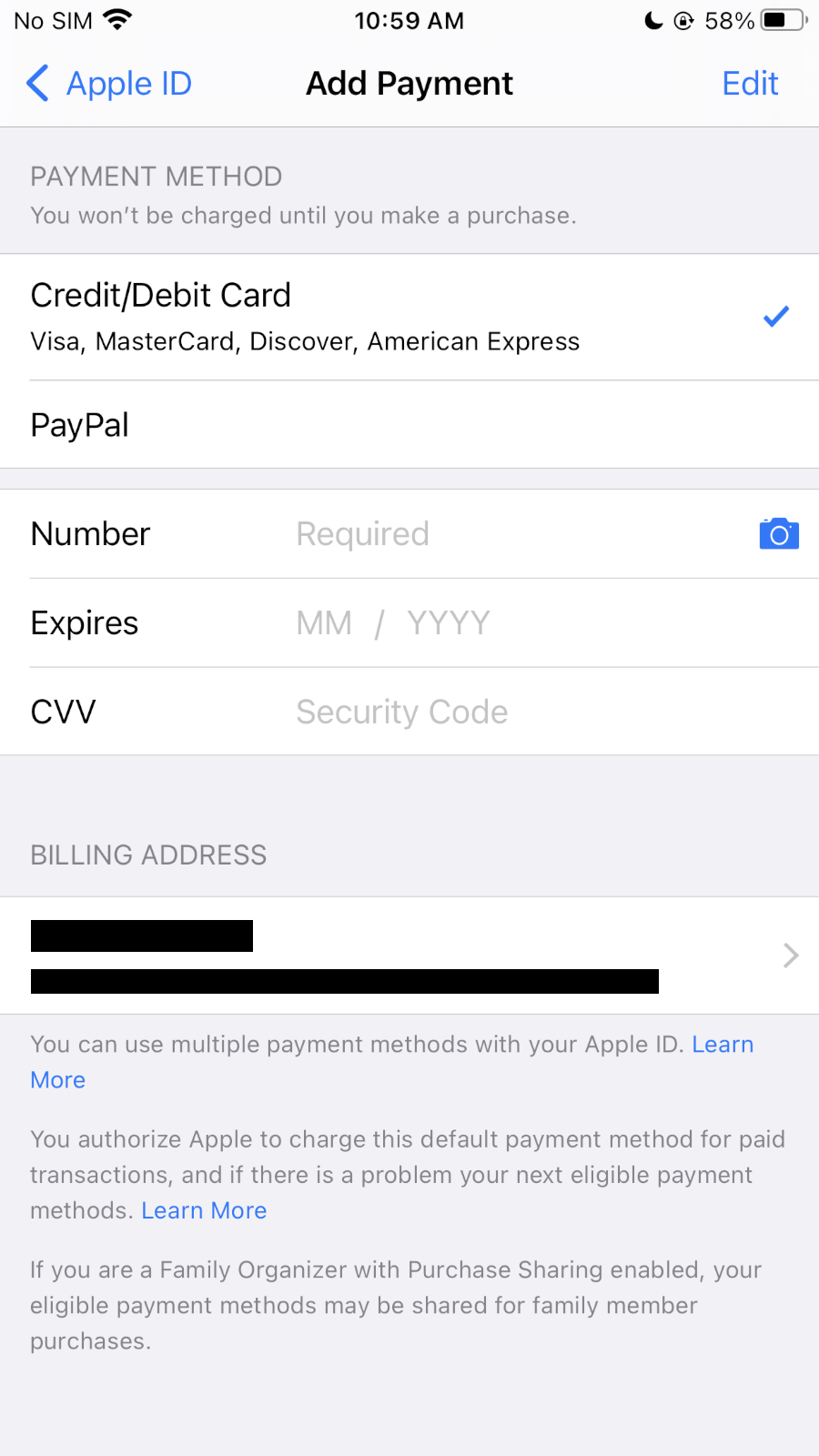 Select Credit/Debit Card And Fill Required Card Detail and valid Billing Address to Authenticate Payment Method